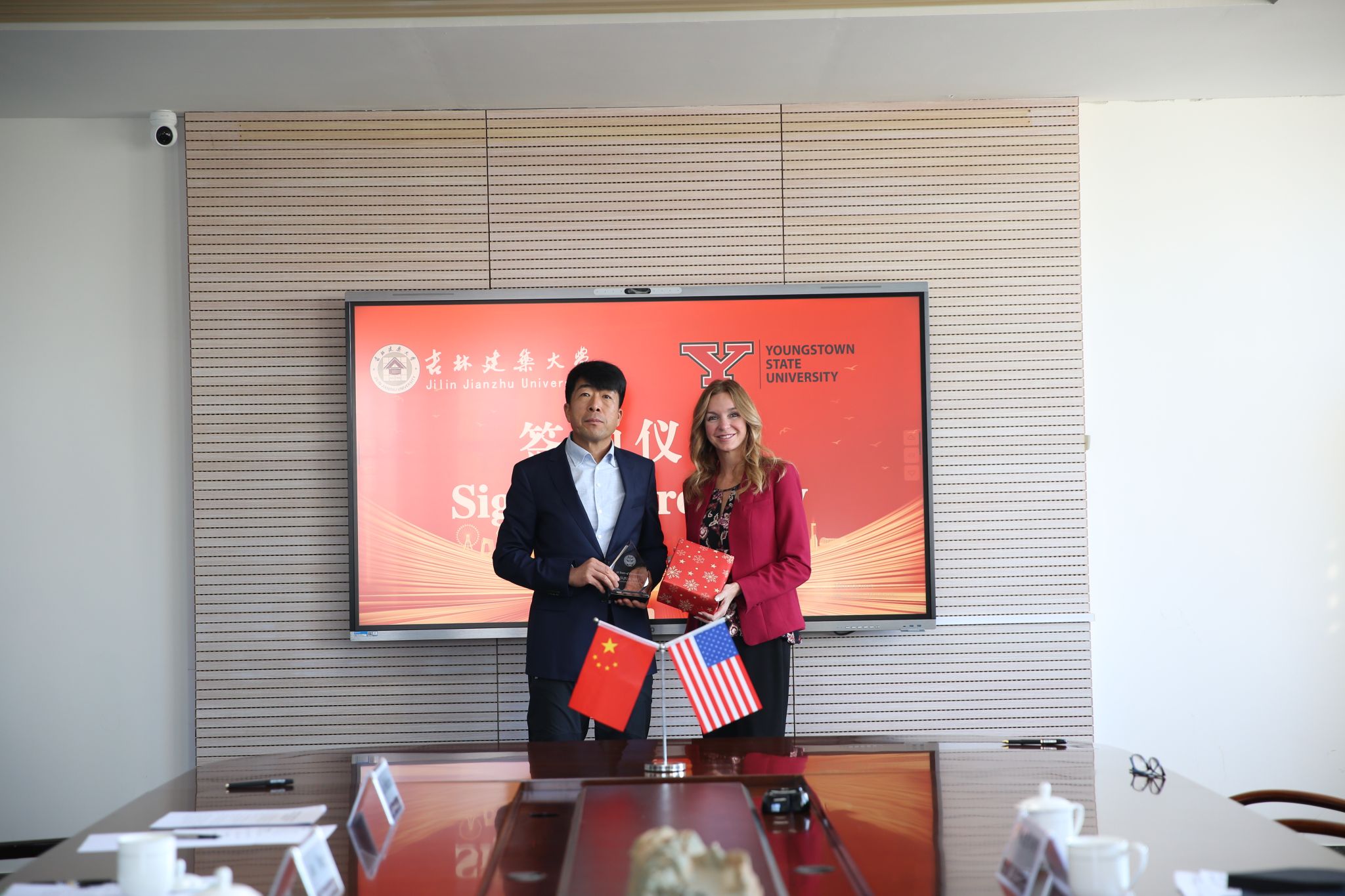 座谈会后,双方举行了《吉林建筑大学与美国杨斯顿州立大学合作举办电气工程及其自动化专业本科教育项目》协议续签仪式。
