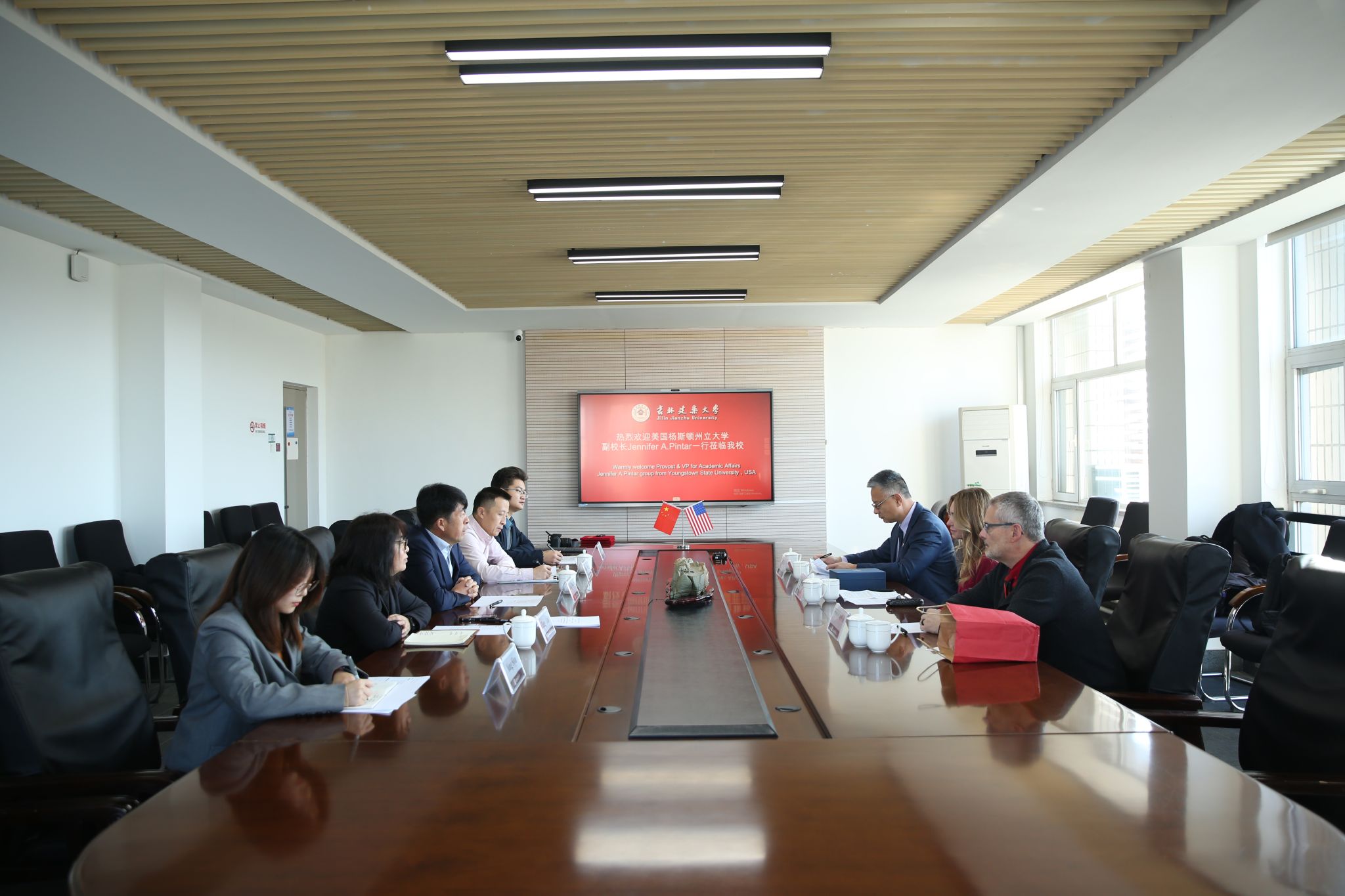 10月28日,美国杨斯顿州立大学副校长珍妮弗・平塔尔、副教务长维姆・斯蒂兰特以及瑞恩工程学院院长弗兰克・李访问学校。学校党委副书记张学建在行政办公楼A401会议室亲切会见。座谈会由对外合作与交流处处长唐珞主持。